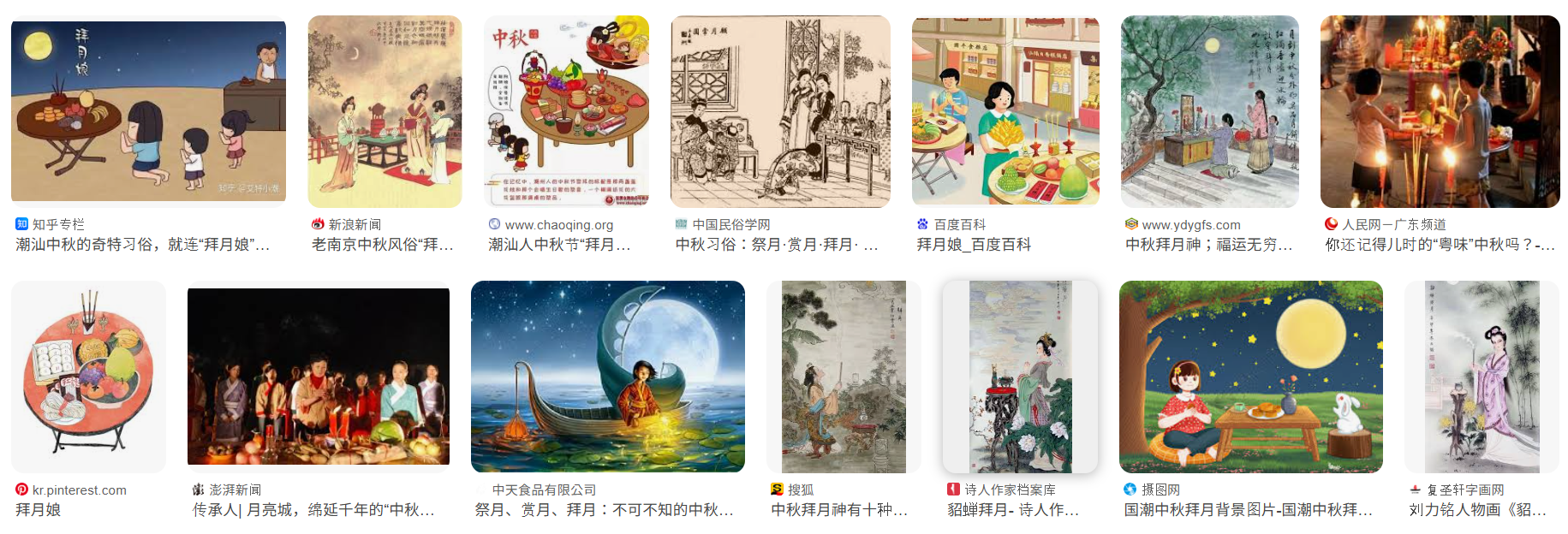 중국은 중추절에 가족과 모여 건강을 기원한다는 점에서 우리의 추석과 비슷하지만, 제례를 지내는 대상이나 명절음식은 다르다. 한국은 조상께 차례를 지내지만, 중국은 달에게 제사를 지낸다. ‘배월(拜月)’ 이라고 해서 달을 바라보며 소원을 비는 것이다. 이때 제사상에 올리는 것이 월병(月餠)이다.