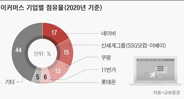 2020년 글로벌 이커머스 시장규모 / 약 4조 2,000억달러 〈국내 이커머스社〉 국내 Big 3 이커머스 시업인 네이버, SSG닷컴, 쿠팡은 각각 시장 점유율 17%, 15%, 13%를 차지하고 있습니다. 〈미국 이커머스 기업〉 아마존이 41%로 압도적으로 높습니다. 〈중국 이커머스 기업〉 알리바바가 50%에 달할 정도로 높습니다. 치열한 이커머스 시장 (naver.com) 이커머스 산업이란 PC, 모바일 등 온라인 매체를 이용해서 제품이나 서비스를 구매하는 시장을 의미합니다. 2020년 글로벌 이커머스 시장 규모는 약 4조 2,000억달러로, 한화 약 4,803조원의 어마어마한 크기입니다. 이커머스 시장은 2019년 대비 27.6%이라는 이례적인 성장률을 보였는데요. 기존에 이미 이커머스 시장이 상..